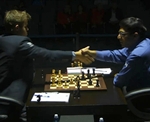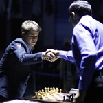 20.11.2014 - Die 9. WM-Partie endete nach nur rund einer Stunde Spielzeit und 20 Zügen mit einer dreimaligen Stellungswiederholung remis. Wie Magnus Carlsen zugab, musste er sehr früh einsehen, dass Viswanathan Anand bestens vorbereitet war und dieses Mal im Berliner Endspiel (oder Mittelspiel ohne Damen?) mühelos ausglich. Offensichtlich scheute der Weltmeister das Risko und nahm lieber den halben Punkt mit, statt wie sonst im Trüben zu fischen. Dass beide Seiten mit diesem Partieverlauf glücklich sind, wäre eine ziemliche Übertreibung, aber sie können gut damit leben. Carlsen hat eine Weißpartie "verschenkt", Vishy dafür den Rückstand nicht aufgeholt, dafür ist der Norweger eine Partie näher an der Titelverteidigung, der Inder hat hingegen 2:1 Weißpartien übrig, um das Blatt noch zu wenden. Mit großer Spannung warten wir nun auf die 10. Partie am Freitag. Schon jetzt ist klar, dass es in Sochi mehr Partien geben wird als in Chennai, und wer weiß, vielleicht gibt es am Ende sogar einen anderen Sieger. Der große Garry Kasparov persönlich twitterte jedenfalls nach der Partie: "Kurzremisen mit Weiß sind Verrat an Caissa, und das mag sie gar nicht!" Partien, Bilder & mehr... Offizielle WM-Seite