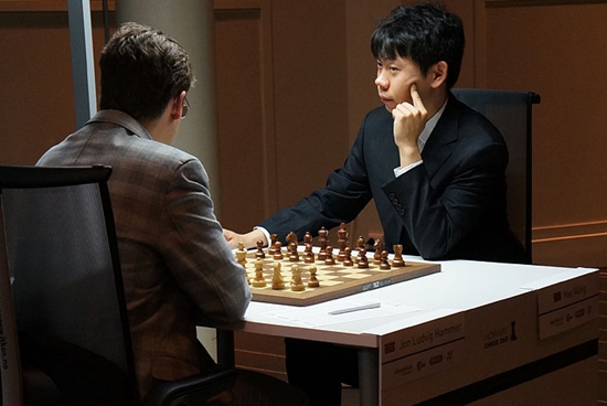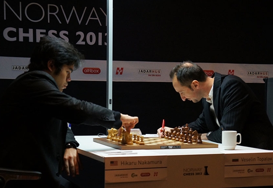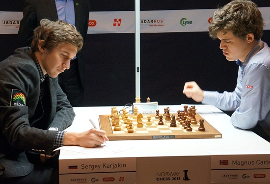 13.05.2013 - Besser kann man es nicht machen. Gestern kündigte Magnus Carlsen für die fünfte Runde in Stavanger an, dass er heute gewinnen müsse, und er ließ den Worten Taten folgen. Gegner Sergey Karjakin wird sich sicherlich ärgern, aber seine vier Siege zum Start sorgen dafür, dass er weiterhin mit einem Punkt Vorsprung führt. Neben Carlsen ist Hikaru Nakamura in Schlagdistanz. Heute gönnte sich der Amerikaner gegen Veselin Topalov ein recht unspektakuläres Remis, wie es auch Peter Svidler und Vishy Anand sowie Teimour Radjabov und Levon Aronian taten. Für den norwegischen "Doppelsieg" sorgte etwas überraschend Jon Ludvig Hammer, der Wang Hao schlug und diesen somit zu sich ans Ende der Tabelle beförderte. Die sechste Runde beginnt am Dienstag um 15 Uhr.