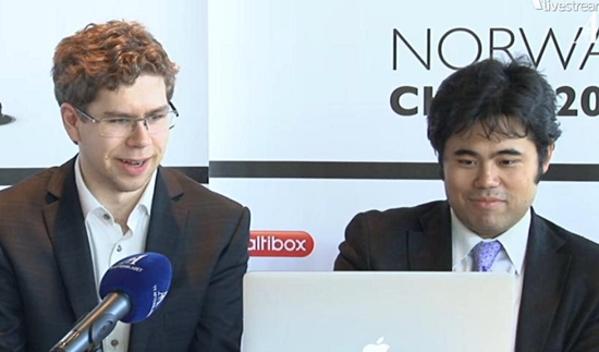 18.05.2013 - Als Magnus Carlsen aufgrund mangelnder Gewinnmöglichkeiten gegen Levon Aronian ins Remis zustimmte, stand fest, dass Sergey Karjakin lediglich ein Remis gegen Veselin Topalov benötigte, um der (verdiente) Turniersieger beim Norway Chess 2013 zu werden. Denn der andere Hauptkonkurrent, Viswanathan Anand, stand zu diesem Zeitpunkt bereits auf Verlust gegen Wang Hao. In der Folge suchte der Inder zwar noch nach einer Festung, aber der Chinese passte auf und besiegte damit an zwei Tagen erst die Nummer 1 der Weltrangliste und dann auch noch den Weltmeister. Alle Achtung! Unterdessen hatten Peter Svidler und Teimour Radjabov ihre Partie friedlich beendet, und Hikaru Nakamura war erfolgreich über Jon Ludvig Hammer hergefallen, so dass nur noch Karjakin und Topalov die Bühne zierten. Hätte der Wahl-Russe verloren, wäre es zu einem Blitzturnier mit ihm, Carlsen und Nakamura gekommen. Aber Karjakin nutzte seine zumeist bessere Stellung, um schließlich seinen Gegenüber zum Remis zu überreden. Der Turniersieg in Stavanger dürfte für Karjakin mindestens so wichtig sein, wie sein Erfolg 2009 in Wijk aan Zee. Herzlichen Glückwunsch!