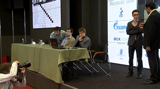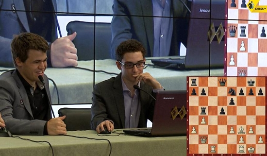 15.06.2013 - Dass in der Weltspitze jeder gegen jeden gewinnen kann, ist hinlänglich bekannt, da stellt auch Magnus Carlsen keine Ausnahme dar. In der heutigen dritten Runde des Tal Memorials stellte der Norweger gegen Fabiano Caruana frühzeitig einen Bauern ein und kämpfte fortan ums Remis. Das schien im Turmendspiel auch zum Greifen nahe, aber dann leistete sich Carlsen einen schlimmen Fehler und wurde von Caruana studienartig ausgespielt. Damit schlug der Italiener nach dem Weltmeister auch noch die Nummer 1 der Weltrangliste. Apropos Weltmeister, Viswanathan Anand steigert sich von Partie zu Partie und konnte heute gegen Alexander Morozevich den ersten Sieg erzielen, Der Moskauer geriet in eine passive Lage und versuchte, sich mit zwei Bauernopfern aus der Klemme zu befreien. Doch Anand wies nach, dass dies taktisch nicht gerechtfertigt war und sammelte den vollen Zähler ein. Den dritten Sieg des Tages genehmigte sich Hikaru Nakamura. Sein Gegenüber Sergey Karjakin wehrte sich zwar mit Händen und Füssen, doch der Amerikaner holte sich auch von der russischen Nummer 2 den ganzen Punkt, nachdem er ja gestern bereits die Nummer 1 geschlagen hatte. Die beiden anderen Partien der dritten Runde endeten bereits nach 23 bzw. 26 Zügen friedlich. Nach dem ersten "0 aus 2" seiner Karriere wollte Vladimir Kramnik gegen Shakhriyar Mamedyarov nur ein Remis und bekam es auch, und Boris Gelfand holte als Weißer gegen Dmitry Andreikin keinen Vorteil aus der Eröffnung und stellte den Kampf frühzeitig ein. Daher führen mit Caruana, Nakamura, Gelfand und Mamedyarov gleich vier Spieler mit +1 vor dem morgigen Ruhetag. Am Montag geht es mit der vierten Runde wie gewohnt um 13 Uhr weiter - wieder mit GM Klaus Bischoff live bei ChessBase.