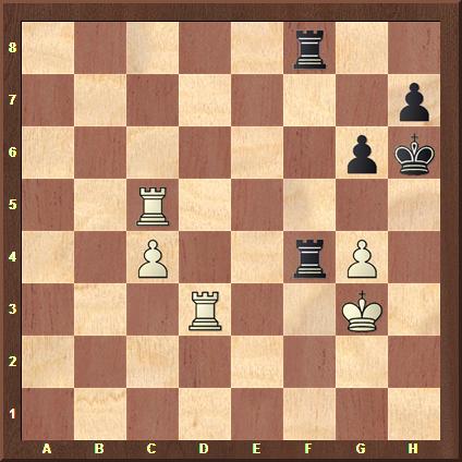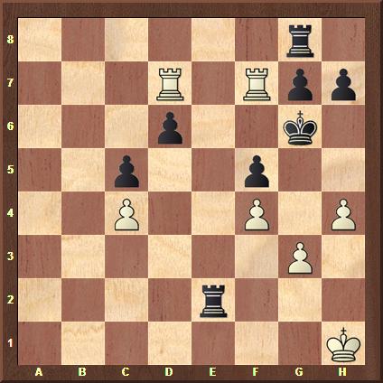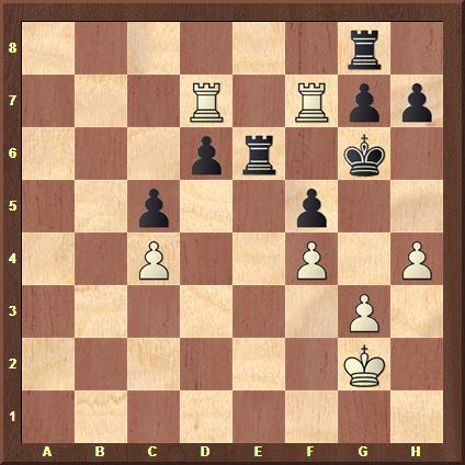 50.Tf5 Txf5 51.gxf5 h5 52.c5 Ke7 53.Kh4 Kf6 54.c6 Ke7 55.f6+! ist die schöne Entscheidung. Schwarz gab auf. 55...Ke6 56.c7 1–0