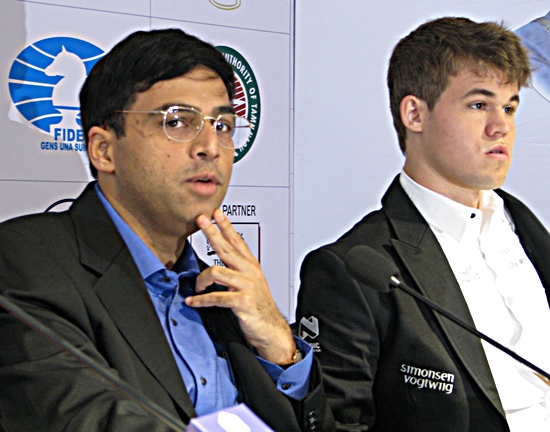 1.Partie: Anand - Carlsen Beide spielten sehr kontrolliert und konzentriert, wobei Magnus zu zeigen schien: "Ich kann alles gegen Dich spielen" und Vishy Anand: "Ich bin auf alles vorbereitet!"