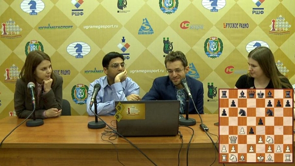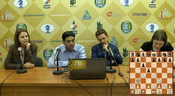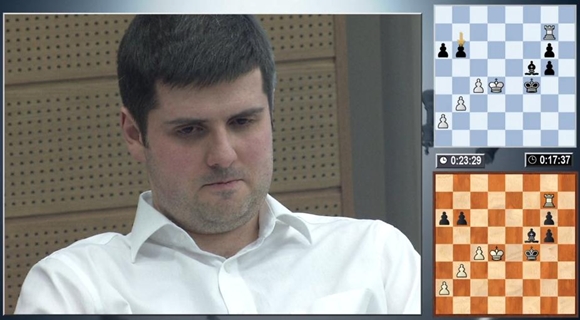 Hier wähnte sich Aronian bereits angeblich in einer deutlich schlechteren Stellung, aber Vishy bemerkte, dass man Lev nicht immer ernst nehmen darf...