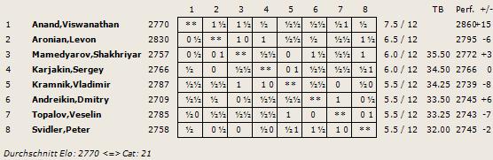 TopTurniere Candidates 2014 - Anand fast am Ziel Vorentscheidung vor dem letzten Ruhetag verpasst