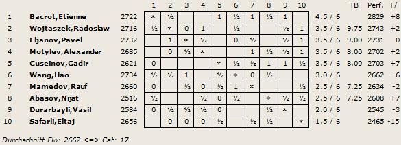 TopTurniere Gashimov Memorial - Carlsen wieder in der Spur B-Turnier: Bacrot biegt auf Zielgerade ein