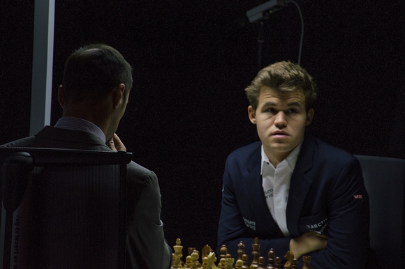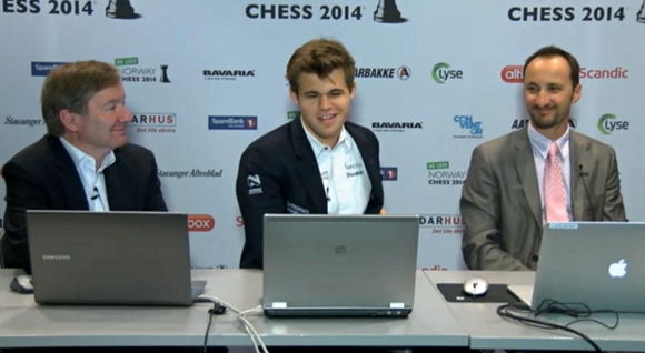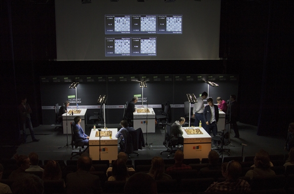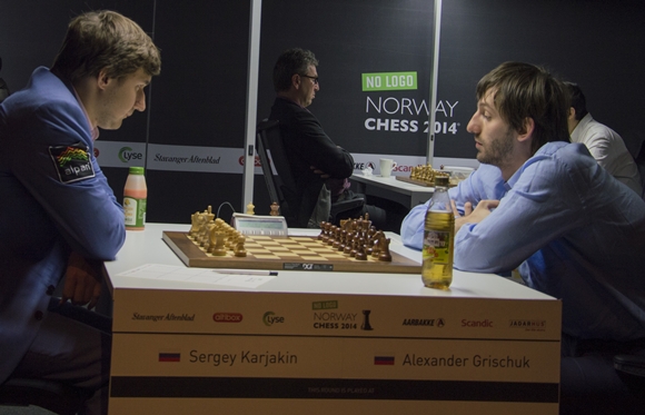 07.06.2014 - Nachdem Sergey Karjakin in Runde 4 noch riesigen Dusel gegen Simen Agdestein hatte, geriet er heute gegen Alexander Grischuk erneut in die Bredouille sprich eine Qualität in Rückstand. Aber der Wahl-Russe kniff wieder die Backen zusammen und glich die Qualle Zug um Zug aus. Irgendwann hätte Grischuk auf Remis umschalten müssen, aber er fand den Punkt nicht und verlor. Alle anderen Duelle endeten ausgekämpft ohne Sieger, lediglich Veselin Topalov bewies bei seiner Zugwiederholung in aussichtsreicher Stellung gegen Magnus Carlsen, dass ihm momentan sein sonst berüchtigter Kampfgeist fehlt. Damit führt weiterhin Fabiano Caruana mit jetzt 3/4 vor Vladimir Kramnik mit 2,5 Punkten und einer 5er-Gruppe mit 50 Prozent. Runde 5 beginnt am Sonntag wie gewohnt um 15:30 Uhr und wird wieder live für Sie bei ChessBase von GM Klaus Bischoff kommentiert.