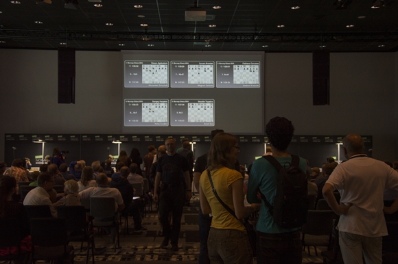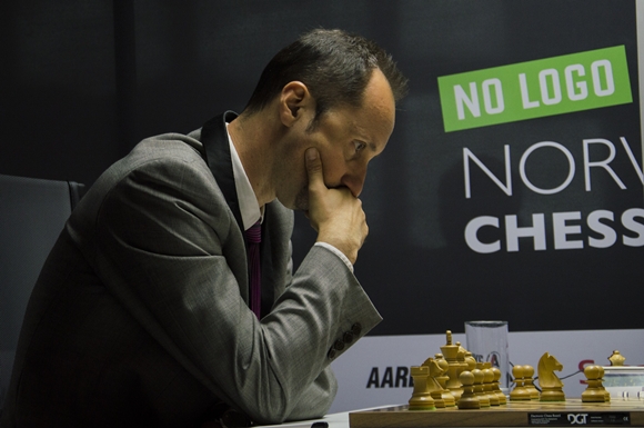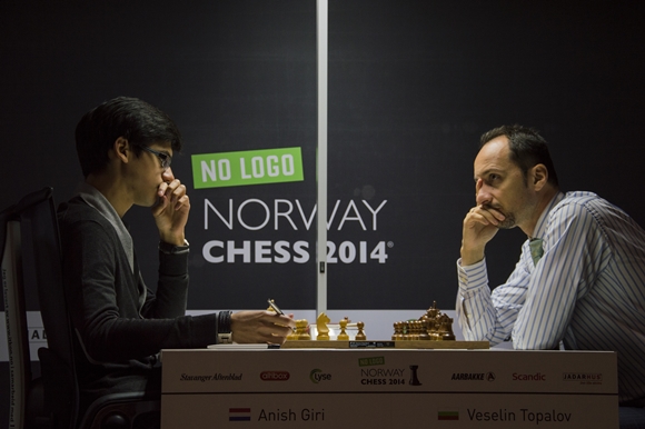09.06.2014 - Gestern war Vladimir Kramnik noch der strahlende Tabellenführer, als er mit immenser Hilfe Fabiano Caruanas in Runde 5 des No Logo Norway Chess 2014 siegte. Doch Freud und Leid liegen auch im Schach nicht allzu weit auseinander, und so setzte es heute für den 14. Weltmeister ausgerechnet gegen Veselin Topalov eine Niederlage. Weder vor noch nach der Partie gaben sich die Streithähne die Hand, und die vertraglich vereinbarte Pressekonferenz verweigerte die russische Diva ebenfalls. Kramnik musste die alleinige Führung gleich wieder abgeben, doch immerhin konnte ihn niemand überholen. Sowohl Caruana als auch Magnus Carlsen holten heute gegen Simen Agdestein beziehungsweise Sergey Karjakin "nur" ein Remis und liegen somit gleichauf mit Kramnik vorn. An seinem heutigen Geburtstag genehmigte sich Kommenator GM Klaus Bischoff einen Ruhetag, doch Runde 7 am Dienstag wird er wieder für Sie live bei ChessBase kommentieren.