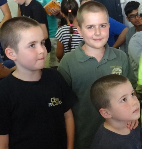 Blagoev-Power aus der Anna-Schmidt-Schule: Boyan (2.Klasse), Boris (4.Klasse) und Deyan (Vorschulklasse). Die Jungs aus Bulgarien lieben Ihren Weltklassespieler Vesselin Topalov aus Sofia und trainieren mit den Chess Tigers und den Ideen von Viswanathan Anand und Artur Jussupow.
