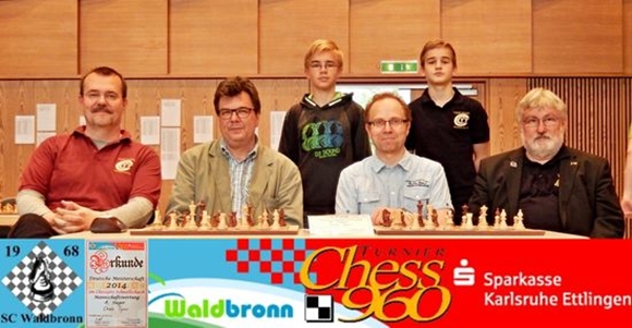 Den Team-Titel verteidigten mit 18,5:9,5 Punkten die Chess Tigers aus Bad Soden. Für die kamen neben Bischoff und Metz zudem Hans-Dieter Post sowie Chess- 960-„Papst“ Schmitt in die Wertung. Die Plätze belegten die SF Neureut (17,5) und die OSG Baden-Baden (16,5).