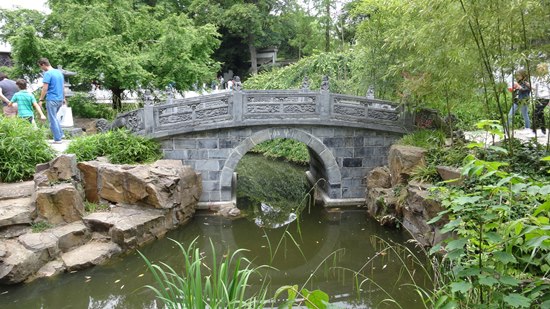 Der Chinesische Garten im Bethmannpark (Quelle Wikepedia): 1983 war geplant, den im Rahmen der Internationalen Gartenschau im Münchner Westpark angelegten chinesischen Garten nach Frankfurt zu verlegen. Zwar hat sich dieses Vorhaben zerschlagen, der Wunsch der Frankfurter nach einem eigenen chinesischen Garten aber war geweckt. Daher begann die Stadt 1985 mit dessen Realisierung im Bethmannpark, wo die gleichnamige Familie bereits vor zweihundert Jahren ostasiatische Gewächse gepflanzt und gezüchtet hatte. Vorbild waren dabei die Shuikou-Gärten aus Huizhou. Die Gebäude sind angelehnt an den Stil einfacher Wohnhäuser aus der Provinz Anhui.