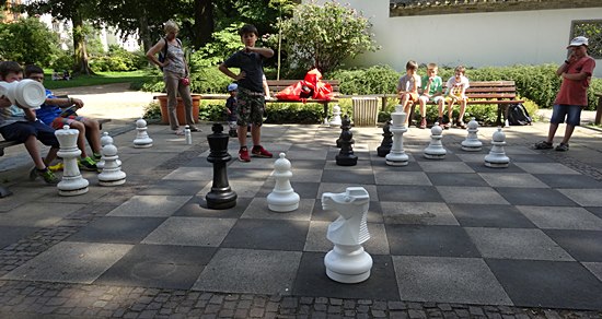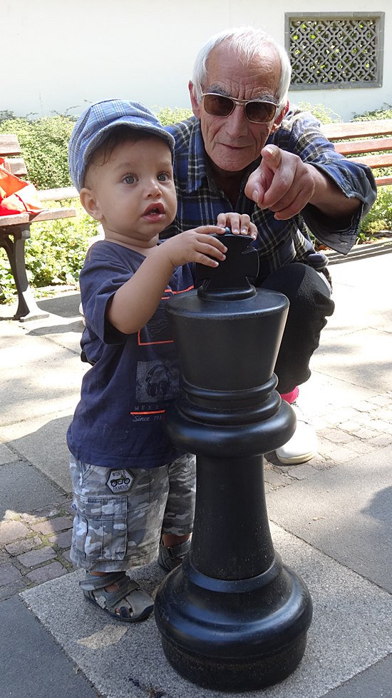 Leider war das Schachbrett mit einer noch im Mittelspiel befindlichen Partie besetzt. Das kann dauern, war klar, aber jetzt musste unsere kleine List bei den älteren Herren zum Ziel führen - wir machten unser Angebot, welches Sie scheinbar nicht ablehnen konnten, oder? Aber sie langweilten uns noch ein bisschen ...