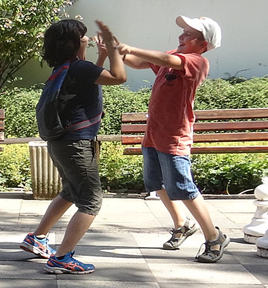 Der Montessori-Grundschüler Leo Noah Becker im Tanz mit dem Regel-Grundschüler Boris Blagoev - können Emotionen ehrlicher und ausdruckreicher sein?