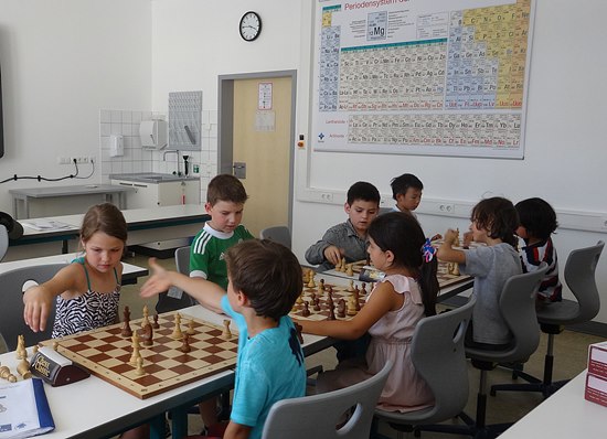 Die Eltern der Erst- und Zweitklässler nutzen das Schach gerne in der Nachmittagsbetreuung, um ihren begabten Kindern das "Einmaleins" des Schachs in den AGs vermitteln zu lassen. Von Italienischer Eröffnung, über kurze und lange Rochaden, En Passant schlagen, Mattsetzen, Doppelangriff, Spieß und Gabel haben sie alles drauf, inklusive mit der Uhr spielen und die Züge aufschreiben. Um vielleicht Großmeister zu werden, braucht man genau wie in der Mathematik sicher 13 Jahre oder 10.000 Stunden intensiv lernen, aber es kann auch schneller gehen, dass Hauptziel ist aber erstmal Schach als Katalysator zu nutzen, um es in anderen Fächern wie Mathematik und Physik leichter zu haben. Das Schach passt ins "MINT" (Mathematik, Informatik, Naturwissenschaften und Technik) -Konzept, früher einfach "Technisches Gymnasium" genannt, mit allgemeiner Hochschulreife als Ziel.