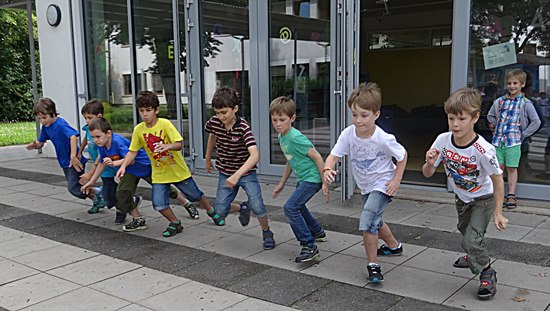 Da wird bei den kleinen Wettkämpfern keinen Millimeter verschenkt. Simon, wie beim Start von Usain Bolt, der schnellste Sprinter war nachher der Läufer Jonas Günkel bei der Runde um die Akazie "Weiße Rose".