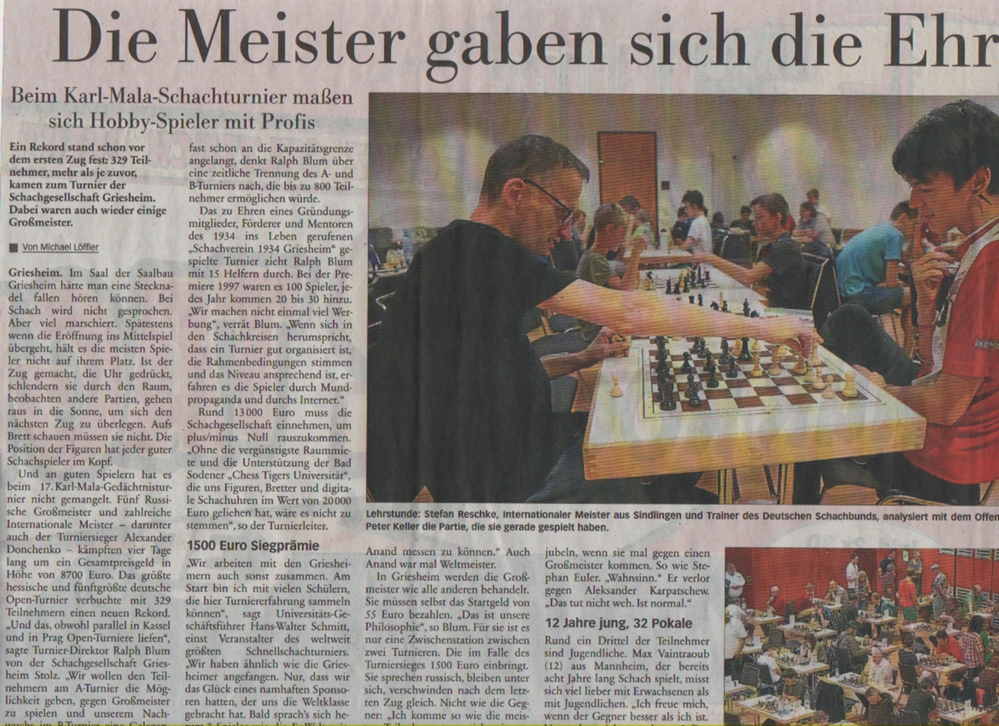 Der lebendige Artikel im Höchster Kreisblatt beschreibt die Schachattraktion ziemlich treffend. Der Internationale Meister Stefan Reschke gehört auch zum Stamm der Chess Tigers Trainer!