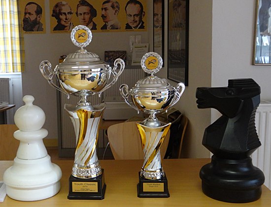 Das Objekt der Begierde: "Der Wander-Pokal mit 66cm Höhe und die krachneue Datenbank ChessBase13. Darüber hinaus gibt es den DeepFritz 14, Houdini 4 und der brandneue Komodo 8 zur Auswahl für den zweiten Platz und weitere Preise für den 3. und 4.Platz werden in Zukunft die jungen Champions noch besser machen.