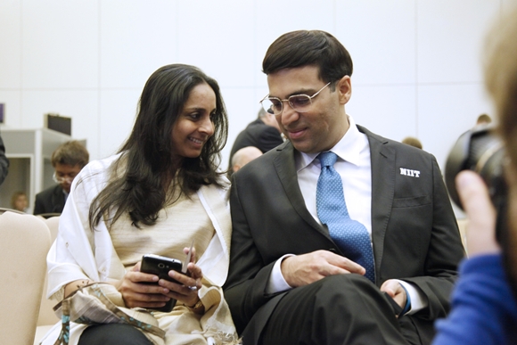 Anand führte seinen ersten Zug nochmals selbst aus, zumal er nicht 1.e4 sondern 1.d4 spielen wollte