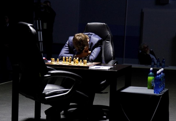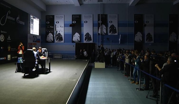 Die gestrige Eröffnungsfeier wurde zumeist und wohl auch zu Recht mit Spott überschüttet, wie man auch im englischen Blog Chess In Tweets nachlesen kann. Unser Eric van Reem sammelt auch zu dieser WM wieder interessante Tweets. Das Highlight der Eröffnugsfeier war lediglich die Auslosung der Farben durch einen Magier, der für Vishy eine weiße und für Carlsen eine schwarze Taube herbeizauberte.