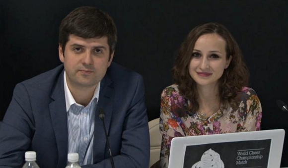 Auf der Turnierseite kommentieren GM Peter Svidler und WGM Sopiko Guranishvili live