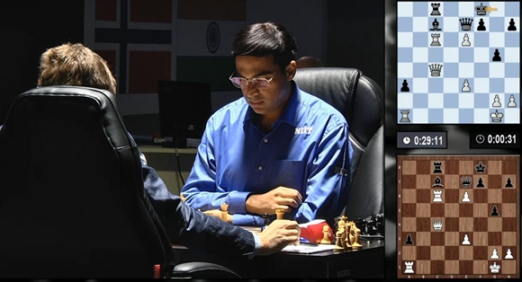 Mit nur noch wenigen Sekunden in hoffnungsloser Lage gab Carlsen auf