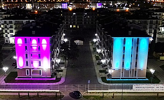Vom italienischen Restaurant "Filini" im Radisson Blu zurückkommend in die oberste Etage konnten wir noch eine kurze Weile auf dem Balkon stehen und dem lebhaften Treiben der Illuminationskunst der fast leeren Olympiastadt unsere Aufmerksamkeit schenken. Die ständig wechselnden Farben der fünfgeschossigen Häusergiebel faszinierten und hatten durch ihre Farbregie doch etwas regelmäßiges, sich wiederholendes mit der ganzen Stille von Sochi. Kein lautes Hundegebell, kein eindringliches Katzenmiauen, kein verwirrenden Menschengemurmel, sogar das Rauschen der Brandung des Schwarzen Meers war nicht zu hören, einzig das Geräusch der sporadisch ab- und anfahrenden schweren deutschen Limousinen von Mercedes, BMW und Audi, neben klappernden Ladas und Moscwitschs war zu hören. Unwillkürlich kehrten die Gedanken in den wunderbaren Raum des gemeinsamen Schacherlebens zurück, wo wir alle gemeinsam dem guten Essen frönen konnten. Hier saßen die Protagonisten Anand und Carlsen mit ihrem A- und C-Teams höchsten fünf Meter entfernt angeregt parlierend zusammen, als wenn nachmittags im Expo Centrum nichts geschehen wäre. Mit den Kommentatoren Peter Svidler und Alexandra Kosteniuk und den Journalisten aus der Niederlande Peter Doggers, Jan Dirk ten Geuzendam und dem einzigen aus Deutschland kommenden Ulrich Stock war das Erleben perfekt, um in Mitten der kompletten Organisationsverantwortlichen, Sponsoren und deren Freunden und natürlich der Fide-Verantwortlichen und Honoratioren "Gens una Sumus" zu fühlen. Irgendwie faszinierend diese übersichtlich und doch undurchschaubare kleine Schachwelt!