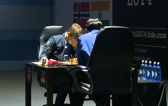 18.11.2014 - In der 8. Partie der Schachweltmeisterschaft zeigte Magnus Carlsen, dass er nach der 3. Partie in Sachen Damengambit mit 5.Lf4 seine Hausaufgaben gemacht hat und demonstrierte dies mit sehr schnellem Spiel. Viswanathan Anand suchte beharrlich nach Möglichkeiten, das Spiel am Laufen zu halten, doch sein Gegner konnte Figur um Figur abtauschen und ein totes Endspiel erreichen. Nun stehen noch vier Partien aus, und ein indischer Sieg muss her.- ohne Wenn und Aber. Wir - die Chess Tigers - glauben an unseren Ehren-Tiger und Freund - auch daran, dass Vishy sehr genau weiß, was er tut und was nicht. Am Ruhetag werden er und sein Team schon für spitze Pfeile im Köcher sorgen und am Donnerstag mit neuem Elan zu Werke gehen. Ein Schwarzsieg wäre doch mal eine nette Abwechslung, oder? Go, Vishy!