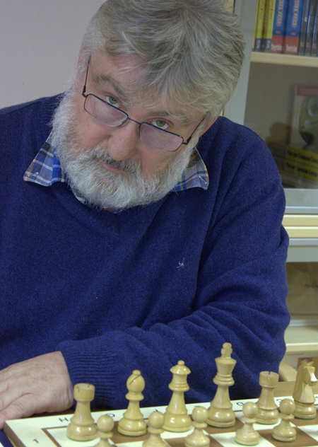 Der Grandseigneur Ferdinand Niebling erkennt man schon an der Handhaltung - hier in der "B9" bei der Frankfurter Chess960-Meisterschaft.