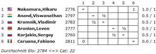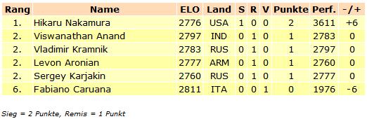 Remis auch zwischen Levon Aronian und Sergey Karjakin