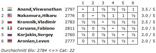 Der Turnierschnitt beträgt 2784, was der Turnierkategorie 22 entspricht.
