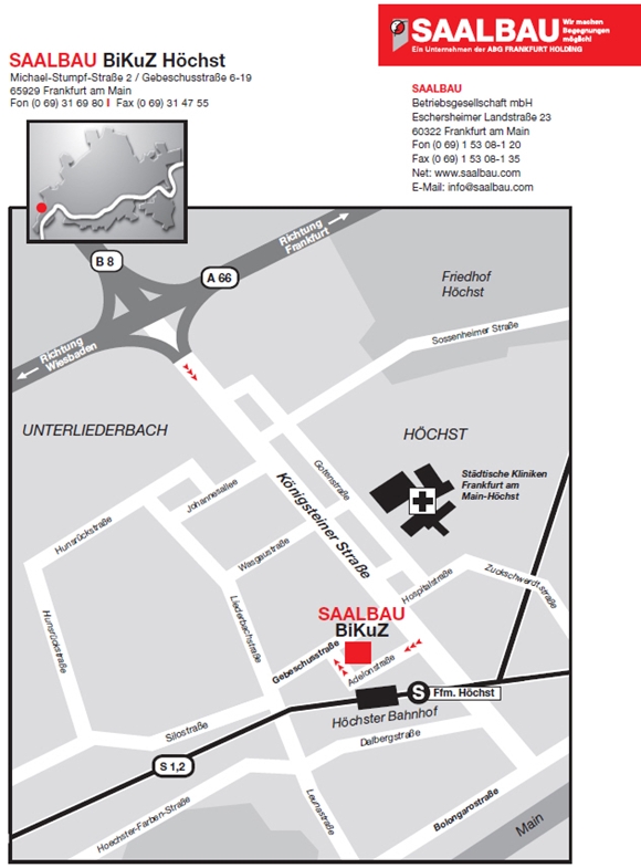 Doch das Bildungs- und Kulturzentrum in Frankfurt-Höchst, direkt an der S-Bahn gelegen und mit großer, für die Teilnehmer kostenfreier Tiefgarage ausgestattet, bietet einen angenehmen Veranstaltungsrahmen, wie man es von den Veranstaltungshäusern der SAALBAU Frankfurt durchaus erwarten kann.