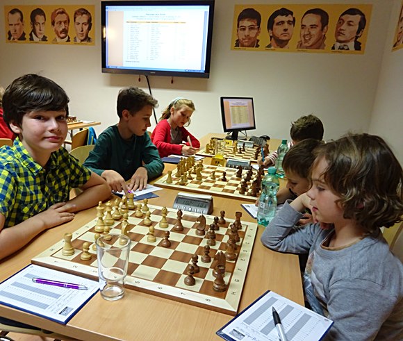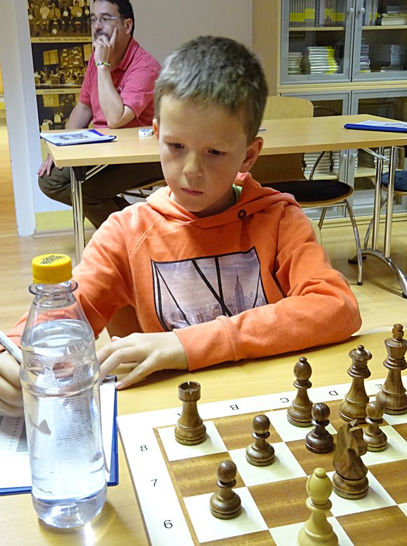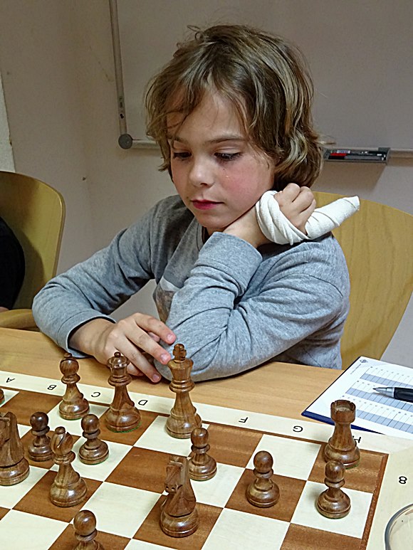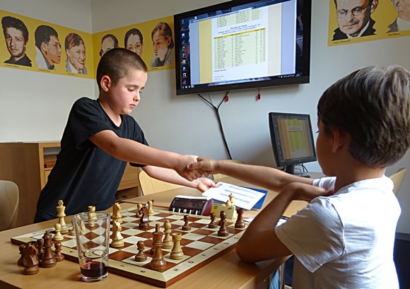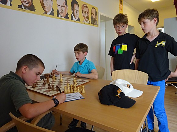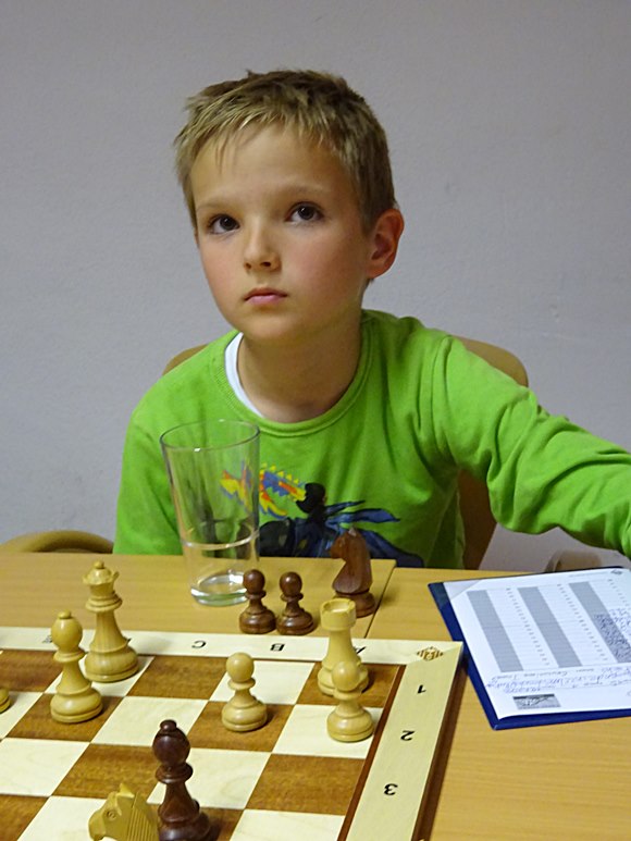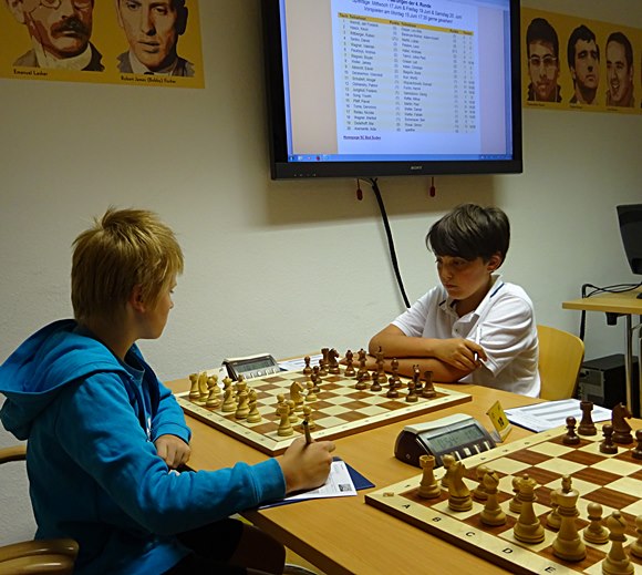 21.06.2015 - Die Turnierteilnehmer der 1.Bad Sodener Jugend-Einzel-Meisterschaft werden immer routinierter und auch die Eltern werden immer termintreuer. Die organisatorischen Kenntnisse der jungen Bad Sodener Mitglieder werden erstaunlich nachhaltig verbessert: Schweizer-System, Auslosungsregeln, Deutsche-Wertungszahl, Basisbedenkzeit mit 60min und additiven 30s pro Zug, wieviel DWZ habe ich gewonnen, wo spiele ich, wann kann ich die nächste Auslosung sehen, welche Farbe habe ich, kann ich gegen Leo kommen, bekomme ich DWZ bei kampflosen Punkten, usw. Die Routine beim Umgang mit der Uhr, Stift hinlegen, suchen nach dem besten Zug, prüfen was der Gegner machen kann oder was er langfristig machen kann, noch einmal Abschlussprüfung, Zug machen, Uhr drücken, Zug aufschreiben, Stift schön hinlegen, auch nachdenken, wenn der Gegner dran ist! Ja, es war der Spieltag der erfahrenen Spieler: Leo Max Deppe siegte gegen den bisherigen Tabellenführer Jan Frederik Werndl mit einer guten Caro Kann-Partie am 1.Brett. Am zweiten Brett spulten die 10-jährigen Kevin Haack und Adam-Kristof Baranyai-Molnar ihre hochdramatische "Italienische Partie" in einem Höllentempo herunter, sodass Sie am Ende mehr Zeit auf der Uhr hatten als vorher: Weiß 1:12h und Schwarz 1:02h. Montags vorher hatten schon die Brüder Boris und Boyan Blagoev sowie Andreas Haller und Frederik Jungblut ihre dritten Punkte eingefahren. Es läuft fantastisch für die Gewinner und noch weniger rund für die Verlierer, aber alle sind mit großem Eifer dabei. Einfach schön, die jungen Cracks!