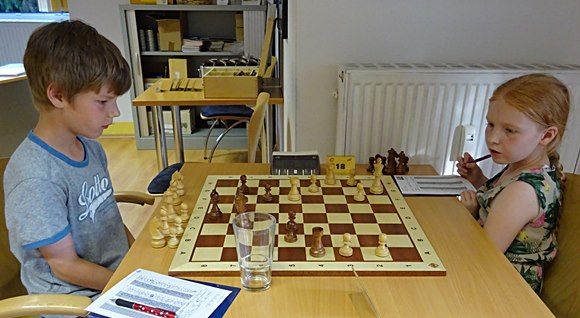 Etwas glücklich eroberte Ben Eichenauer den Punkt gegen Maribel Wagner, die bis zum Schluss gut lesbar mitschrieb ... leider war dann nichts mehr auf der Uhr!