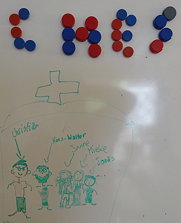 Nicht das Sie denken, die Rempe-Kinder können Schach nicht richtig in englisch "Chess" schreiben! Nein, es fehlten einfach nur ein paar Magnete auf der Kreativtafel.