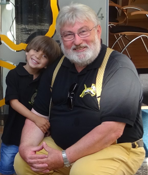 ... er hatte mit dem Chef des Training Centers Hans-Walter Schmitt gut verhandelt und hatte offensichtlich schon die Zusage vollumfänglich erhalten. Im Verhandeln ist er schon sehr gut und hatte wie alle anderen Geschwister auch ein schwarzes CTTC-Polohemd bekommen - Größe 96-102, gut, dass die Chess Tigers auch immer an die kleinen Geschwister der Schachschüler denken. Hier hat wieder Hans-Walter einen "echten" Freund gefunden!