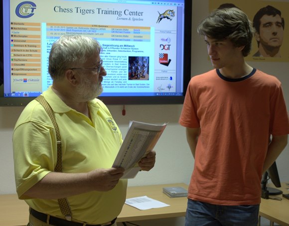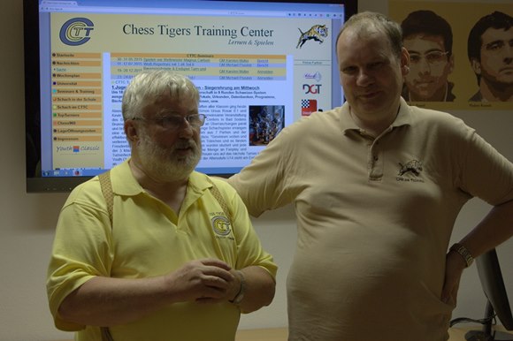 1.JBEM-BS-2015 - der Vorsitzende der Chess Tigers, Hans-Walter Schmitt mit dem 1.Vorsitzenden des SC Bad Soden Roland Bettenbühl - die Motoren der Bad Sodener Schachjugendgeschichten!