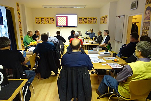 29.12.2015 - Die Begriffe: Fischer-Endspiel, Carlsen-Endspiel, Bodychek, Gewinnzone, Switchback, Quadratregel und vieles, vieles mehr mussten die Teilnehmer entweder als Vorkenntnisse schon mitbringen oder hatten im 48-seitigen Skript die Möglichkeit sich diese kurzerhand noch reinzuziehen. Der Seminarleiter Dr. Karsten Müller konnte wieder seine treue Anhängerschar begrüßen, aber es verirrten sich auch wieder drei neue Gesichter unter die Lernhungrigen im Chess Tigers Training Center, die dann auch noch vor ihrer Abreise die kommenden zwei Seminare buchten. Am 23./24.Januar 2016 das Seminar mit GM Michael Prusikin Thema: "1.e4-Repertoire (1.Teil) und das neue Seminar von GM Dr. Karsten Müller am 7./8.Mai 2016 "Spielen wie Weltmeister Anatoly Karpov"!