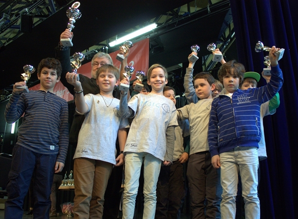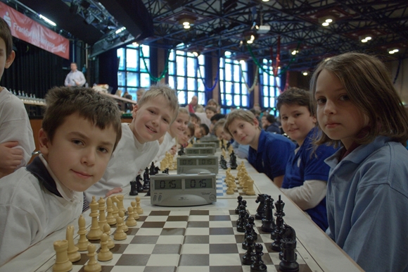 "Hibbdebach-Dribbdebach" - die Anna-Schmidt-Schule aus der Stadtschule Frankfurt traten nur mit Fünf- und Sechs-Klässer an und erzielten mit 5:5 Mannschaftspunkte bei 22 Brettpunkten ein sehr respektables Ergebnis in der Kategorie der "Weiterführenden Schulen I" Boyan Blagoev Klasse 4a ergänzte das Team. Mit über 50% der möglichen Punkte schnitten die Jungs hervorragend ab und hatten mit Pawel Pfaff am 3.Brett mit 5 Punkten aus 5 Partien einen "Hundertprozenter" in ihren Reihen, klasse gemacht! Allerdings war noch mehr drin, in der 1.Runde verlor man sehr unglücklich und in der letzten Runde fehlte der unbedingte Wille zum Siegen. 8:2 Team-Punkte waren möglich, dies werden wir in den nächsten drei Jahren sicher mit unserer Mannschaft erreichen, vielleicht sogar mehr, wenn das Team zusammen bleibt.