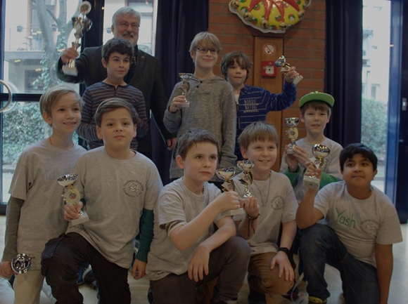 "Hibbdebach-Dribbdebach" - die Phorms-Schule unter der Leitung von Club-Koordinator George Betts hat die Schachaktivitäten in diesem Jahr auf die Grundschule im Campus City in Frankfurt konzentriert, sodass in diesem Jahr ein Team von der Phorms-Grundschule zum Einsatz kam. Mike Rosa leitet die Aktivitäten in Frankfurt Campus City in der "Intensiv" Schach AG und sein Kollege Elmar Kaiser trainiert "Beginner" und "Fortsetzer" im gleichen Haus.