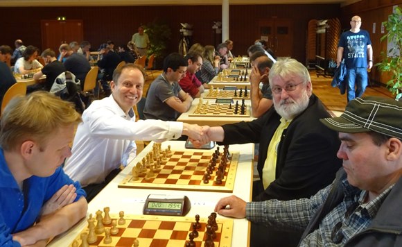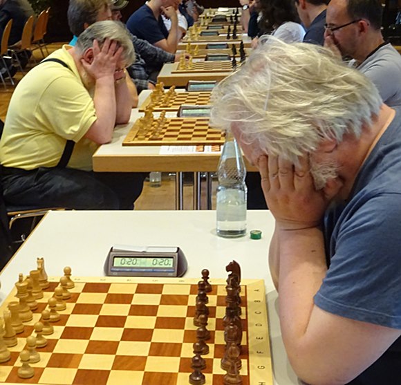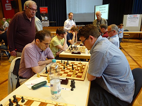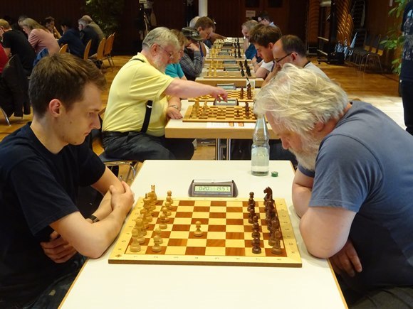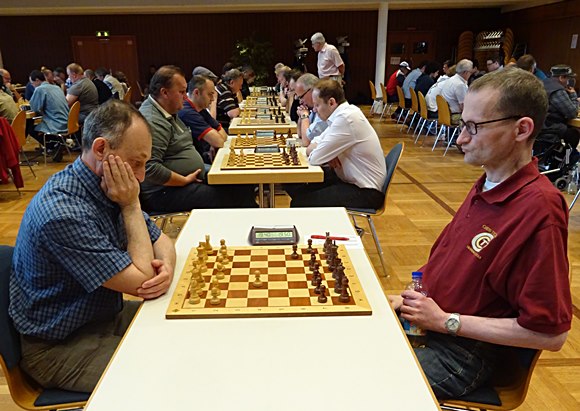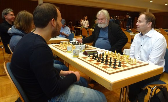GM Vladimir Gurevich (SC Hofheim) gegen IM Stefan Reschke Chess Tigers / SV Oberursel) unter sich.