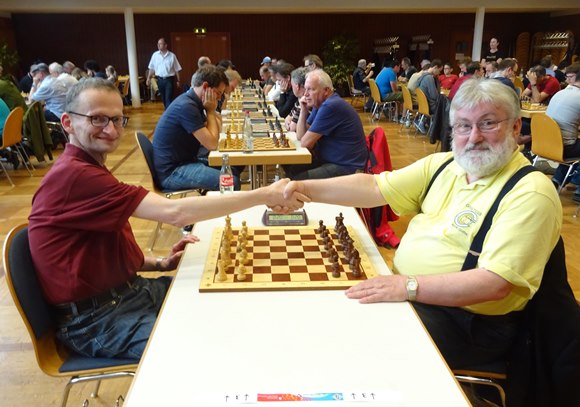 Hier holte sich der Fidemeister im 3.Spiel mit Andreas Weber ein Sieg und gab später in der 6.Runde noch ein Kampfremis gegen den anderen Organisator Hans-Walter Schmitt ab.
