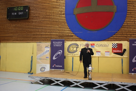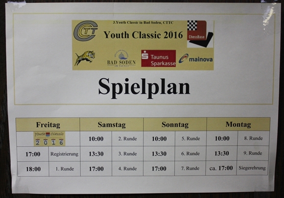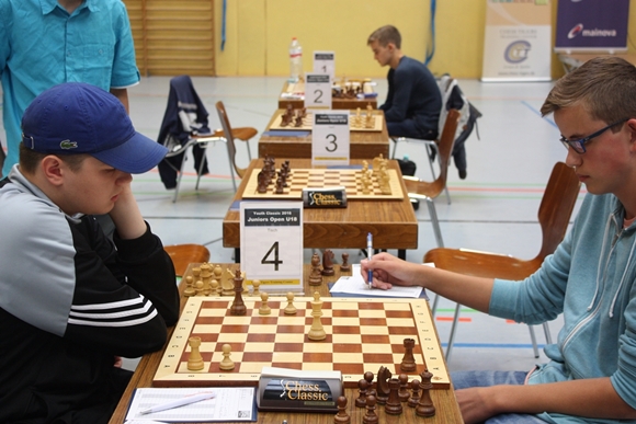 01.10.2016 - Nach 4 von 9 Runden hat sich an den Spitzen der drei Turniere einiges getan. Doch noch gibt es jeweils mindestens einen Spieler, dessen Weste blütenweiß ist und herrlich nach Siegen duftet. Nachdem es beim Juniors Open U18 schon in Runde 3 zum Spitzenduell der beiden klaren Ratingfavoriten gekommen war, gibt es nur noch einen Führenden. Pascal Neukirchner vom SK Gründau landete einen Schwarzsieg gegen Elijah Everett von den SF Schöneck, siegte auch noch in Runde 4 und hat nun als Einziger die volle Punktzahl auf dem Konto. Derweil ist es beim Youth Open U14 noch enger an der Spitze. Wieder ist mit 4 aus 4 der SK Gründau vertreten, dieses Mal in Person von Martin Bayer. Doch den Platz an der Sonne muss er sich mit Jonas Gallasch von der SG Porz teilen. Beim Kids Open U10 musste sich in Runde 4 im Topduell Kevin Haack vom SC Sulzbach Bennet Hagner vom Frankfurter TV geschlagen geben. Letzterer führt nun alleine mit 4 Punkten das Feld an und hat beste Chancen auf den großen Siegerpokal. Wie man ihn halt kennt, hat Turnierleiter Hans-Dieter Post die Veranstaltungsseite bereits auf den neuesten Stand gebracht und auch schon die Paarungen der am Sonntag um 10 Uhr startenden Runde 5 veröffentlicht. In der Folge finden Sie neben einigen Impressionen die aktuellen Tabellen und die nächsten Paarungen.