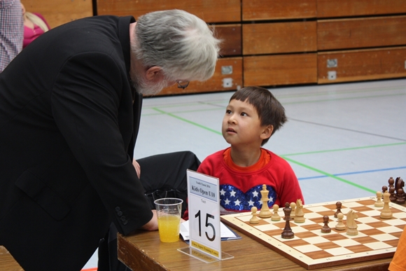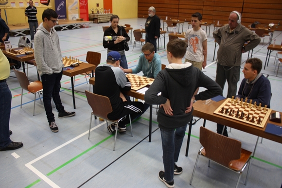Den schnellsten Sieg landete bei den U14ern Pawel Pfaff (Vordergrund) mit einem verzögerten und von seinem Trainer noch so gerade gebilligten Schäfermatt