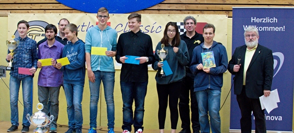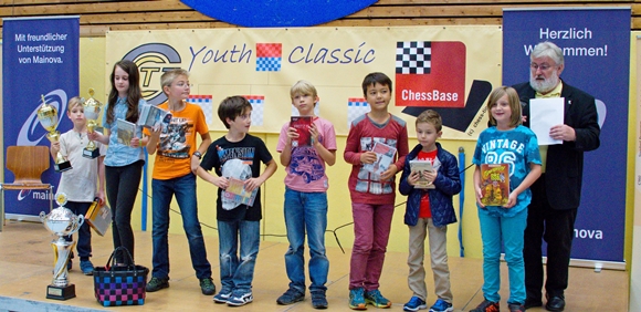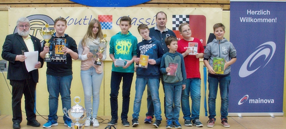 04.10.2016 - Nach langen 9 Runden und 4 Tagen voller Schach hat die Youth Classic in ihrer dritten Auflage eine Menge neuer Turniersieger und Preisträger. Pascal Neukirchner vom SK Gründau setzte sich mit zwei Siegen am Finaltag im Juniors Open U18 knapp mit einem halben Punkt vor Elijah Everett von den SF Schöneck durch. Bei nur einem Remis gewann er alle seine Partien und schnappte sich neben dem großen Pokal auch noch die 300,- Euro Siegprämie. Dritter wurde Frederik Stobbe vom SC Bad Soden. Auch bei den beiden anderen Turnieren siegten jeweils die Spieler, die schon am dritten Tag die Führung übernommen hatten Das Youth Open U14 wurde die sichere Beute von Jonas Gallasch (Bild) von der SG Porz mit 7,5 Punkten vor Martin Bayer (SK Gründau) mit 7 Punkten. Den dritten Rang belegt mit 6,5 Punkten nach Zweitwertung Daniel Schwarz von der SG Idstein. Bennet Hagner vom Frankfurter TV brachte seinen Vorsprung ebenfalls sicher ins Ziel und freute sich über Platz 1 im Kids Open U10. Beinahe muss man sagen, dass er die Konkurrenz deklassierte, denn seine 8,5 Punkte bedeuteten zwei volle Zähler mehr als der Zweitplatzierte Alexander Lorenz vom SV Bergwinkel und der Drittplatzierte Raphael Policarpo vom SC Heustenstamm. Bei den Mädchenwertungen siegten Carolin Valeria Diener (U18 / SK Bad Homburg), Paula Ruppert (U14/ SC Flörsheim) und Rosalie Werner (U10 / VSG Offenbach). Sämtliche Ergebnisse und Preisträger finden sich auf der Turnierseite - hier schließen wir mit einigen letzten Impressionen und den Tabellen. Die Partien müssen noch erfasst werden. Sobald das geschehen ist, stellen wir Ihnen die Datenbanken zum Download bereit.