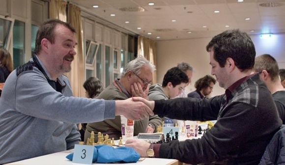 Hochkarätige Konkurrenz erwartet Sie. Hier sehen wir v.l.n.r. Titelverteidiger IM Sven Telljohann, IM Klaus Klundt und nochmals IM Boris Margolin
