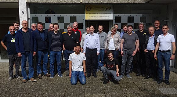 ... und dieses Mal war wunderschönes Wetter und da traute sich der Chess Tigers Clan auch einmal während des Seminars vor die Tür und es gelang ein Schnappschuß mit geordneten Strukturen (wie bei Garry's Partien) von allen Teilnehmern!