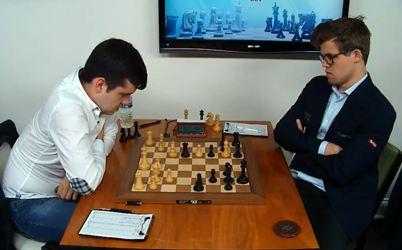 Der Modus lautet: 100 Minuten für 40 Züge plus 60 Minuten für den Rest der Partie. Bereits ab dem 1. Zug erhalten die Spieler einen Bonus von 30 Sekunden pro Zug, der als Verzögerung angewendet wird - der sogenannte Fischer/Bronstein-Modus.