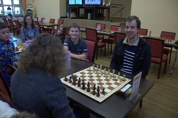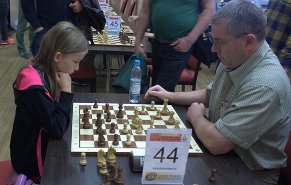 Bester Junior am Start und auch am Ende war wenig überraschend Vincent Keymer. Hinter dem Führungsquartett wurde die deutsche Schachhoffnung beim ersten Chess960-Turnier der Karriere Fünfter. Trotz seiner erst 12 Jahren wirkt der derzeit jüngste Bundesligaspieler erstaunlich abgeklärt und ist in allen Belangen ein Vorbild für alle anderen Jugendspieler. Und was macht ein junger Vollblut-Schachspieler zwischen den Runden, in der Pause und gleich nach dem Turnier? Na klar, er spielt Schach. Er und Donchenko ließen kaum eine Gelegenheit zum Blitzen aus, während es sich die Mama nicht nehmen ließ, am Ende sogar beim Aufräumen zu helfen. Bei diesem jungen Mann braucht man sich um die Bodenhaftung nicht zu sorgen, und mit Trainer Artur Jussupow und Manager Schmitt stehen alle Ampeln auf Grün für eine erfolgreiche Schachkarriere.