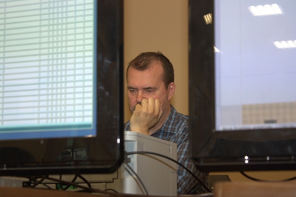 Die Schlussrunde – vorne schlug GM Klaus Bischoff FM Christian Schramm; im Hintergrund remisierten FM Johannes Carow und GM Alexander Donchenko