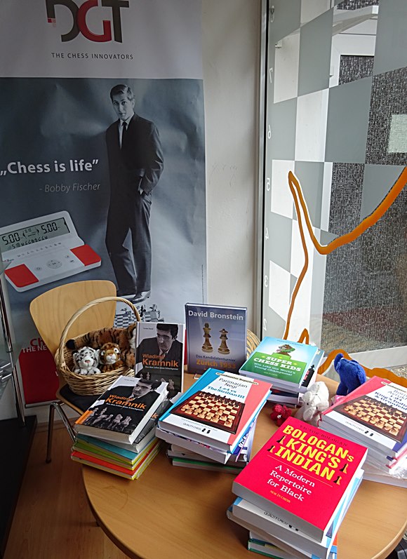 Ehren-Stammgast Robert James "Bobby" Fischer wacht über die Neuerscheinungen am Büchermarkt!