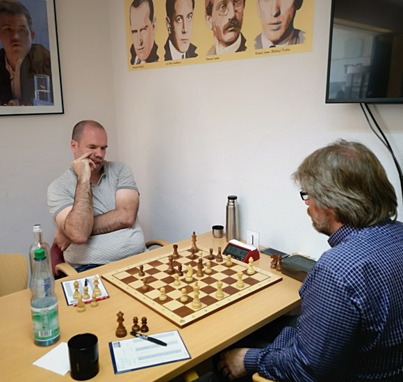 Unser Spitzenspieler Stefan Erdmann wollte kein Remis, ging "All in" und überzog seine haltbare Stellung. Etwas Glück in der Stellung und es kann gut einmal schief gehen.